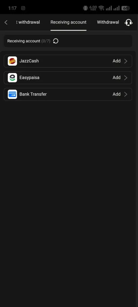 - Select your withdrawal method (JazzCash, EasyPaisa).